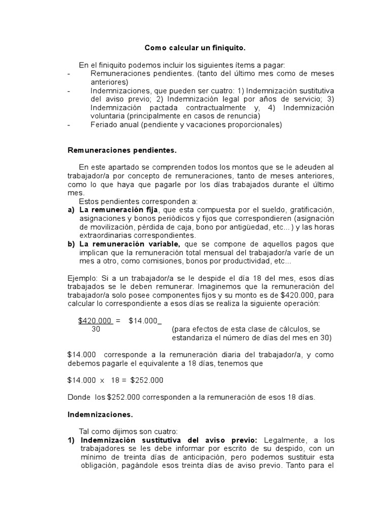 67505668 Calculo De Finiquito Doc Salario Danos Y Perjuicios