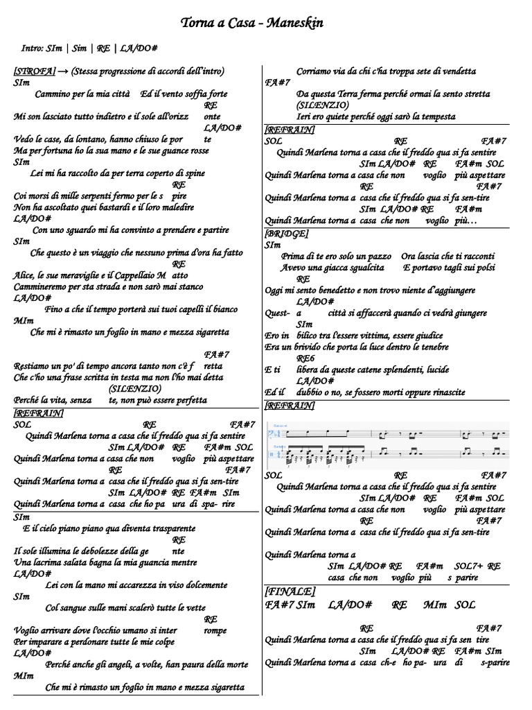 Maneskin Torna A Casa Piano Karaoke Con Testo Chords Chordify